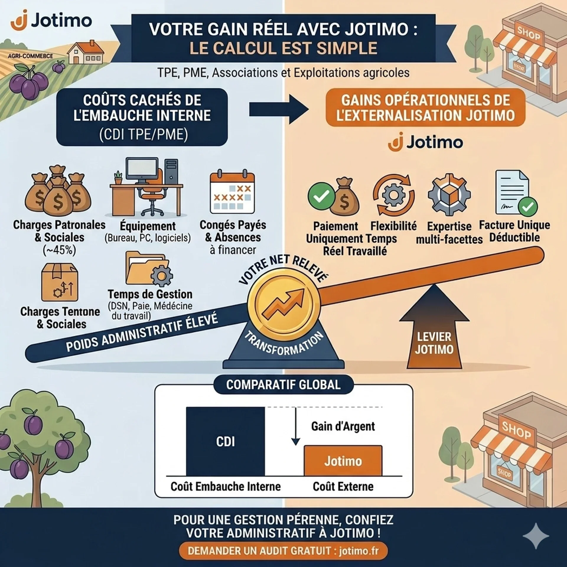 Pour une TPE, un artisan, un agriculteur ou une association, les besoins administratifs sont souvent limités à quelques heures par semaine.