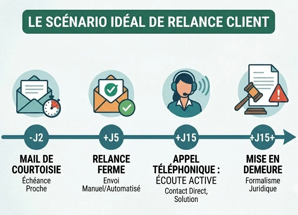 - La psychologie de la relance : Pourquoi le dirigeant a souvent "honte" de réclamer son argent.